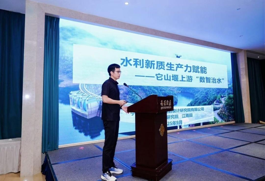 在主旨报告环节,八位专家从不同角度阐释了灌溉工程遗产的多元价值与实践方向。我院智慧水利研究院防灾减灾部总监江雨田以“水利新质生产力赋能——它山堰上游数智治水”为题,系统介绍了我院在数字孪生系统与人工智能技术在“它山堰”遗存保护及鄞江流域水利治理的创新应用成果。他表示:“未来我们将持续提升它山堰及现代水利工程群的硬件能力,并以新质生产力推动数智赋能,实现软硬实力的协同发展。”该报告通过生动实例展示了宁波在灌溉工程遗产保护中理论与实践的融合,也将为水文化遗产的当代传承注入新的实践动能。